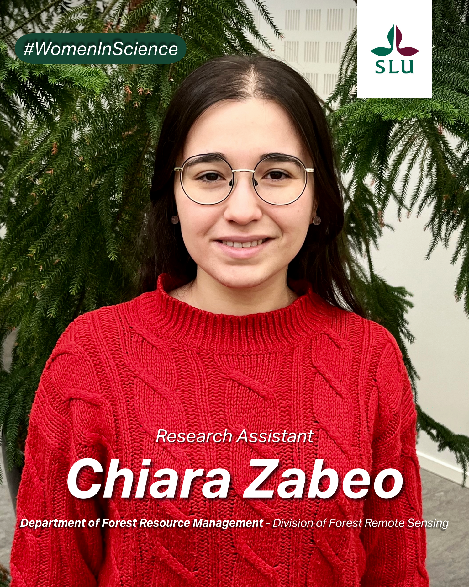 - Hi! I am Chiara and I am originally from Italy. I have a forestry background and I specialised in the use of Remote Sensing technologies to monitor forest health and ecological functioning. I am currently working as a research assistant at SLU in Umeå.